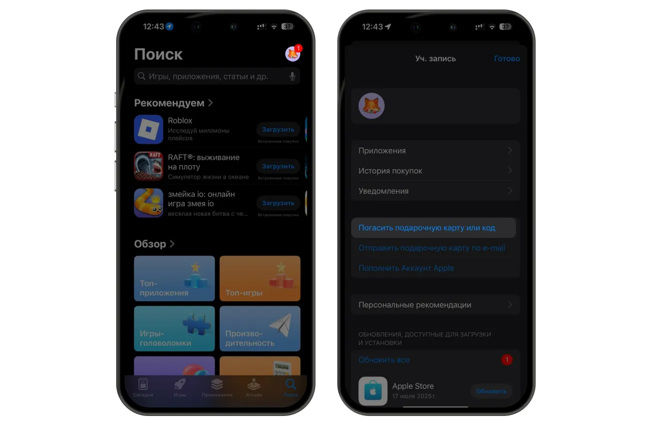 Подарочные карты App Store и iTunes в рублях — самый простой способ пополнить счет Apple. Их можно потратить на подписку Apple Music, дополнительное место в iCloud, а также на любые приложения и игры, которые доступны в России.